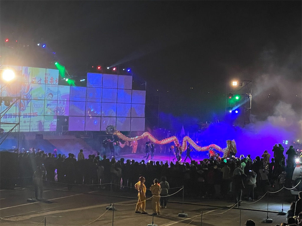 龍がこの爆竹にあたれば当たるほど繁栄、運気が良くなるという言い伝えらしいです。
